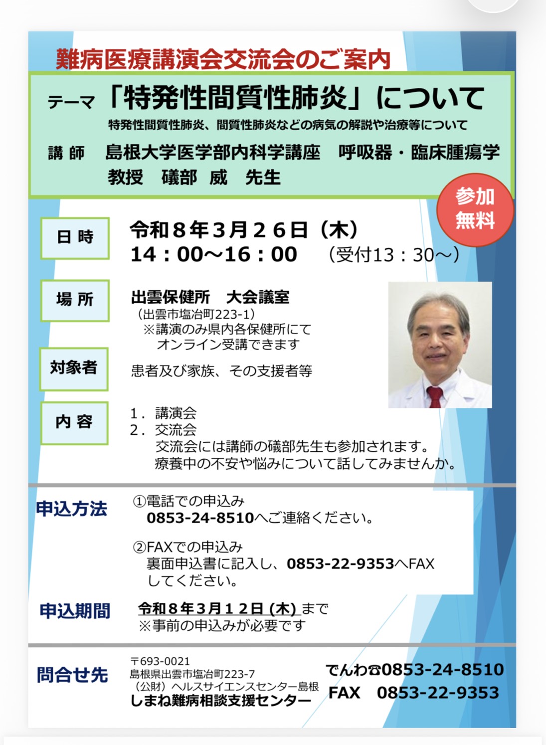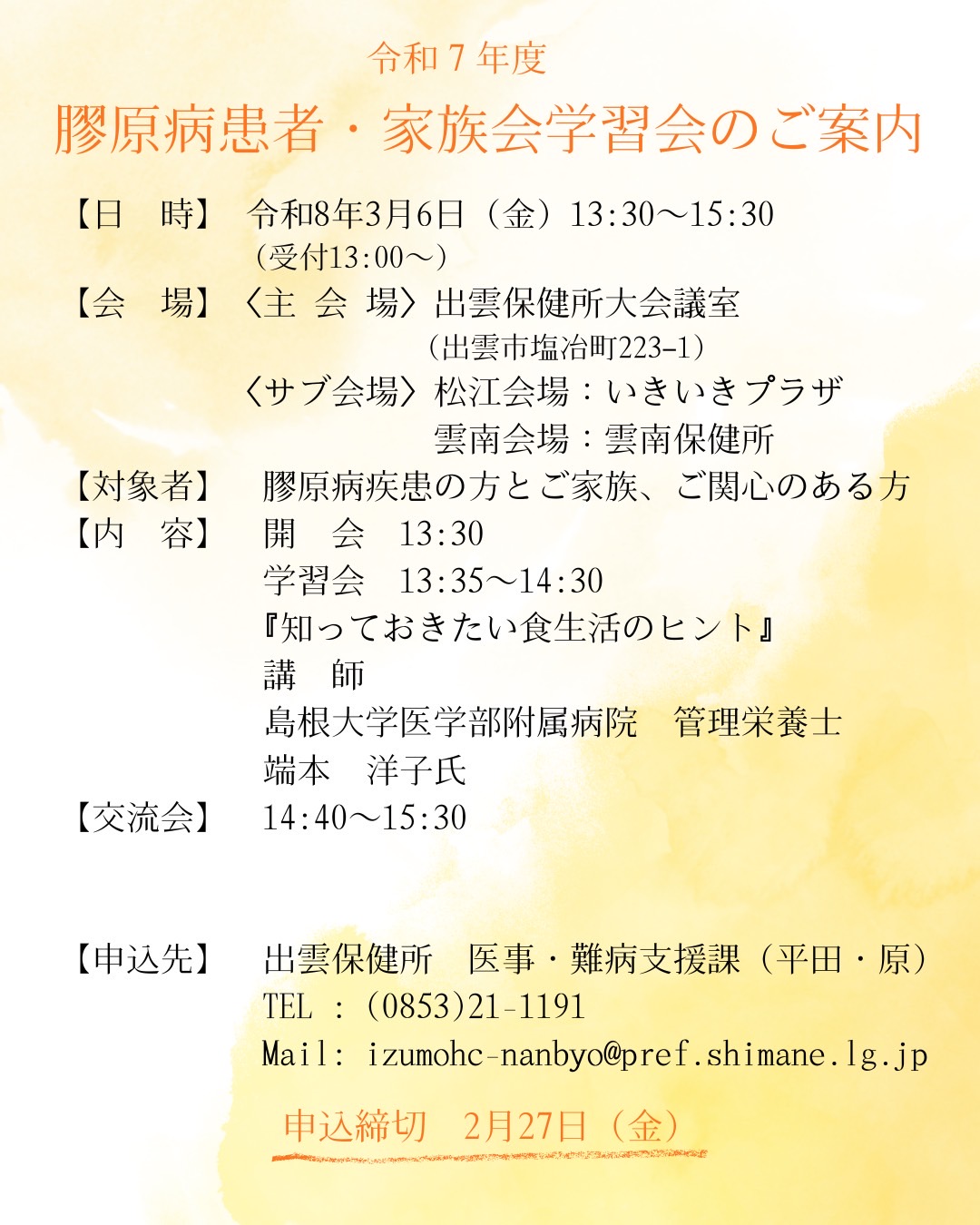 『膠原病患者・家族のつどい』 浜田保健所・益田保健所・県央保健所合同主催。
